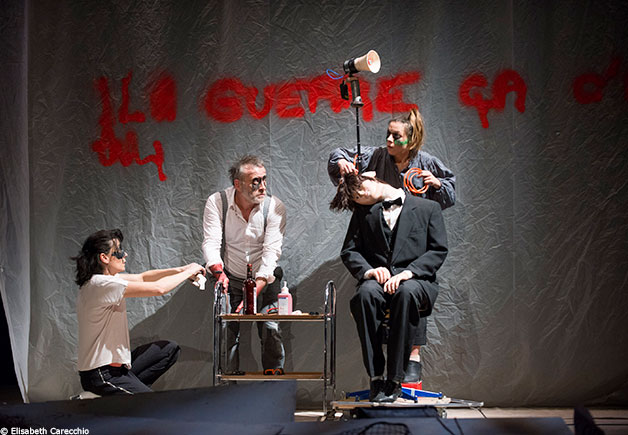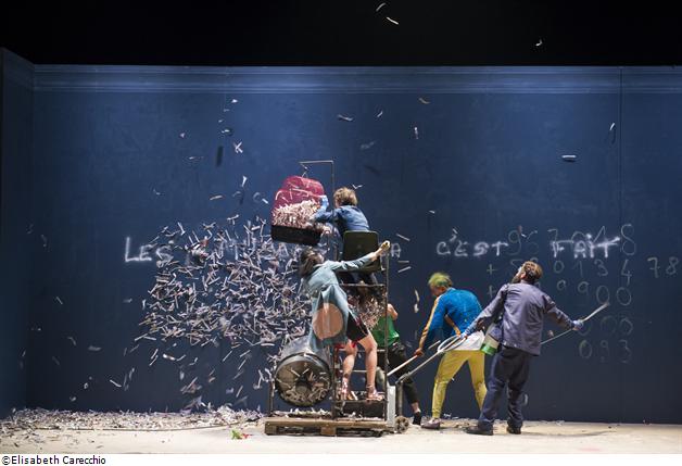 Après le désastre de la Première Guerre mondiale, les Dadaïstes veulent en finir avec la morale bourgeoise. Ils ne croient plus en l’art ni au monde dans lequel ils vivent et décident d’en créer un nouveau, empli de fantaisies, de libertés, de folies et de scandales. Le mouvement artistique Dada est né. Qu’en reste-t-il aujourd’hui ? Quelles traces révolutionnaires a t-il laissé ? Peut-on encore jouer avec ? C’est la question que se pose Alice Laloy, frappée par la proximité entre guerre d’hier et guerre d’aujourd’hui, crise d’hier et crise d’aujourd’hui. Un seul mot d’ordre ici : s’emparer de pinceaux, de ciseaux, de marteaux, de poésie, de clous et de colle et être libre !