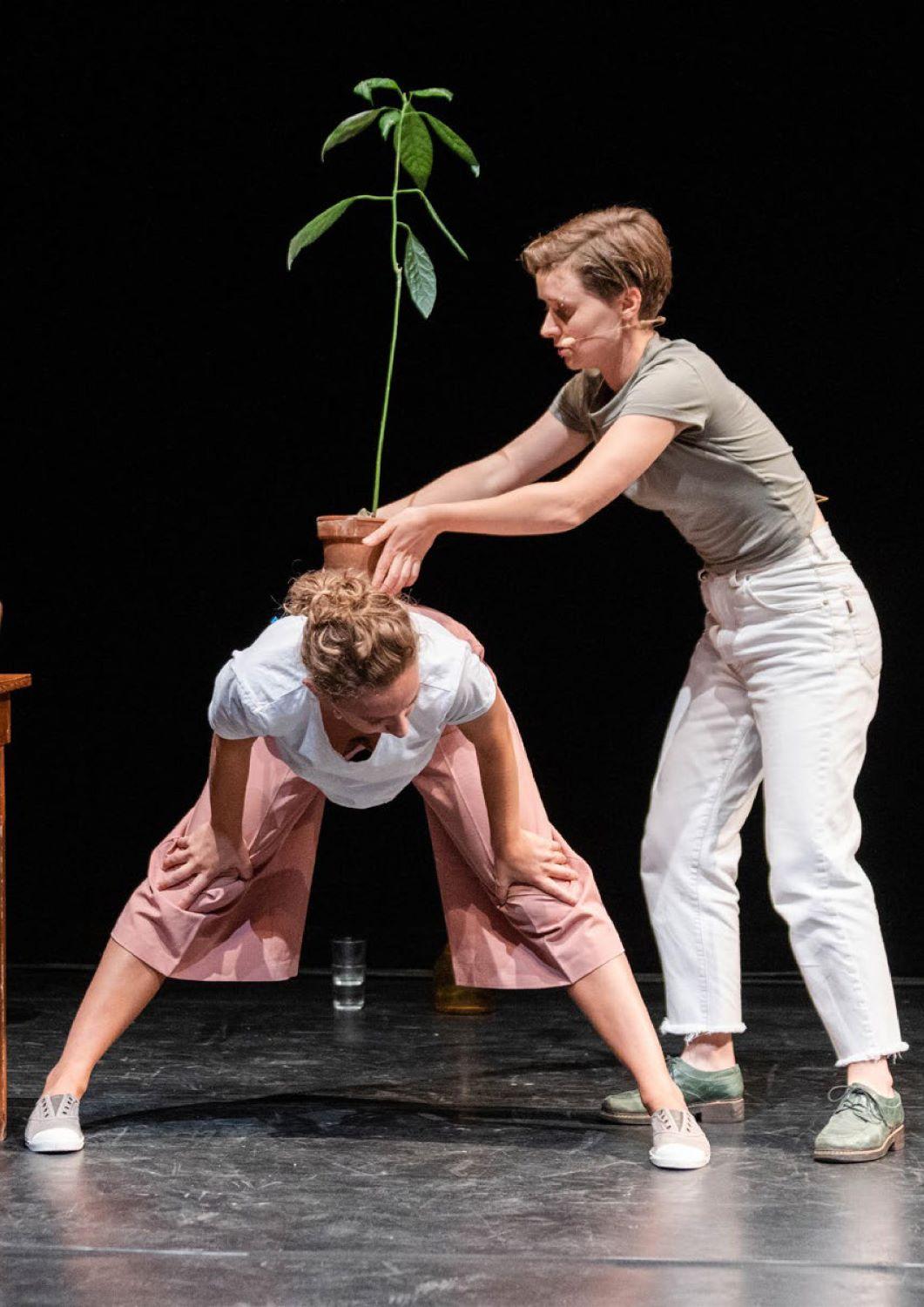 Au fil du spectacle, les deux figures tissent des liens entre récit intime et réflexion politique, entre parole et exploration physique. Elles entraînent les spectateur.ice.s à explorer avec elles le vivant et l’inanimé et à questionner le rôle de l’empathie dans nos modalités d’agir.