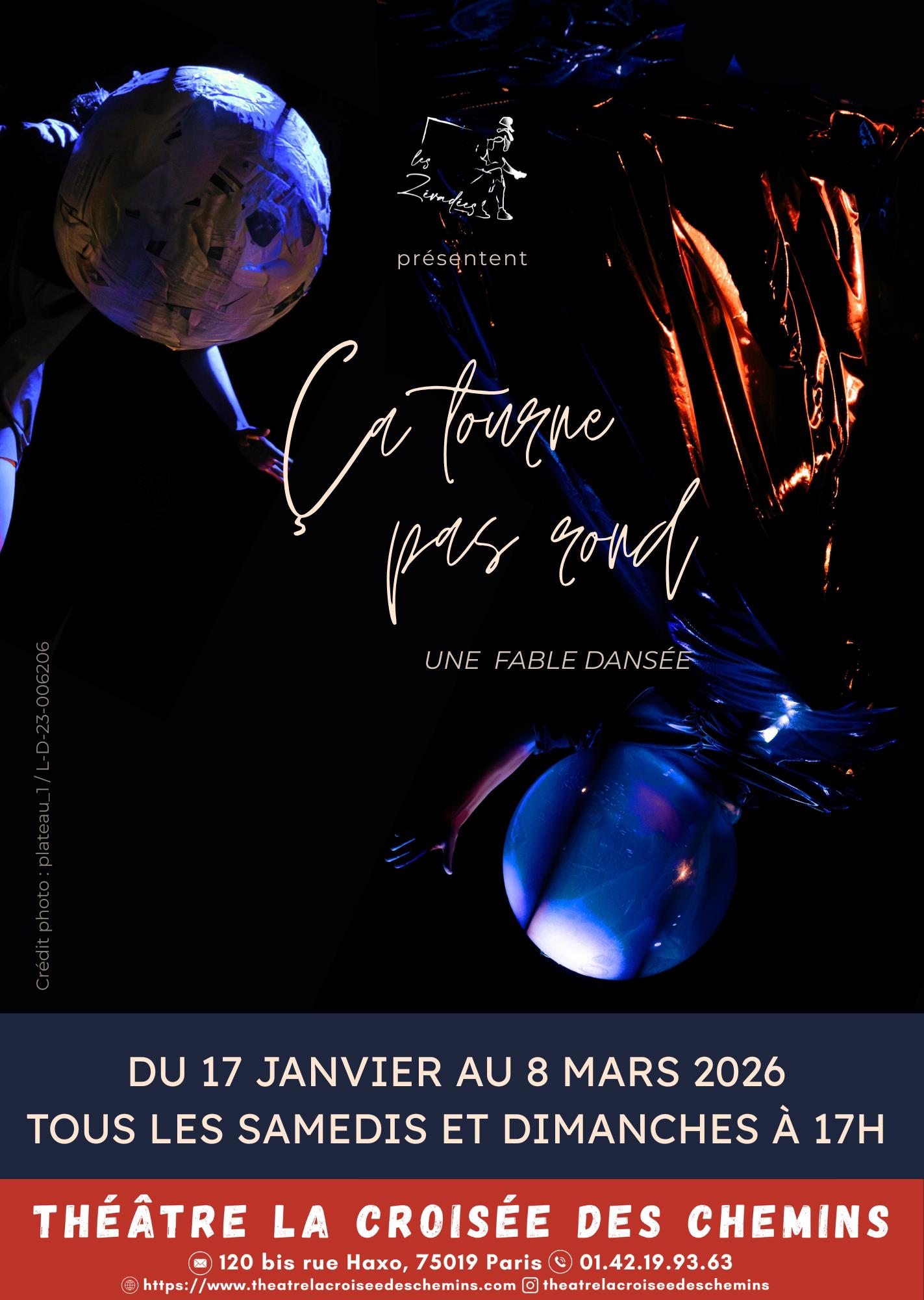 Sur une planète de plus en plus inhospitalière et hostile, les Z’évadées doivent survivre et surmonter les agressions à travers un parcours semé d’embûches. Divers univers se succèdent et rappellent différents espaces naturels : forêt, mer, espace… Un peu comme nos doubles, les Z'évadées portent un regard inédit sur les situations drôlatiques ou dramatiques qu'elles traversent et ressentent l'urgence de réagir à travers le corps, le mouvement. Telle une fable dansée, Ça tourne pas rond invite à faire un pas de côté, comme pour, peut-être, redécouvrir ce qui nous entoure, redéfinir la « norme » dans ce monde fou. Enfants et adultes peuvent s’identifier à ces personnages candides et étranges, qui gardent leur capacité à s'amuser de tout, à s'émerveiller d'un rien.