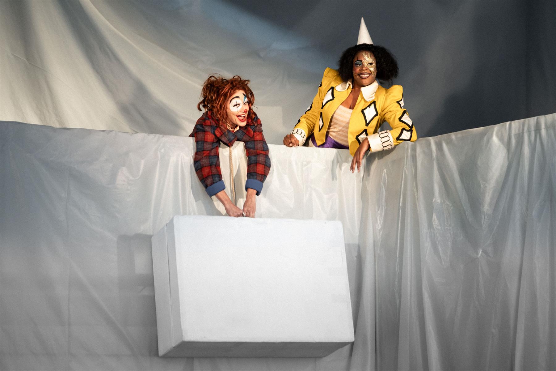 Au départ il y a deux clowns en liberté, un peu décalés. Tout juste sortis de leur chapiteau, Pssitt et Pschutt se lancent dans le grand cirque de la vie. On leur emboîte le pas… Le choc est rude, le monde est à pleurer, sens dessus dessous. Échappés de l’univers de Cami, « the best humourist in the world » selon Chaplin, ces deux histrionnes seront vos guides dans l’espace de la Tempête réinventé en cabaret-chantier surréaliste.