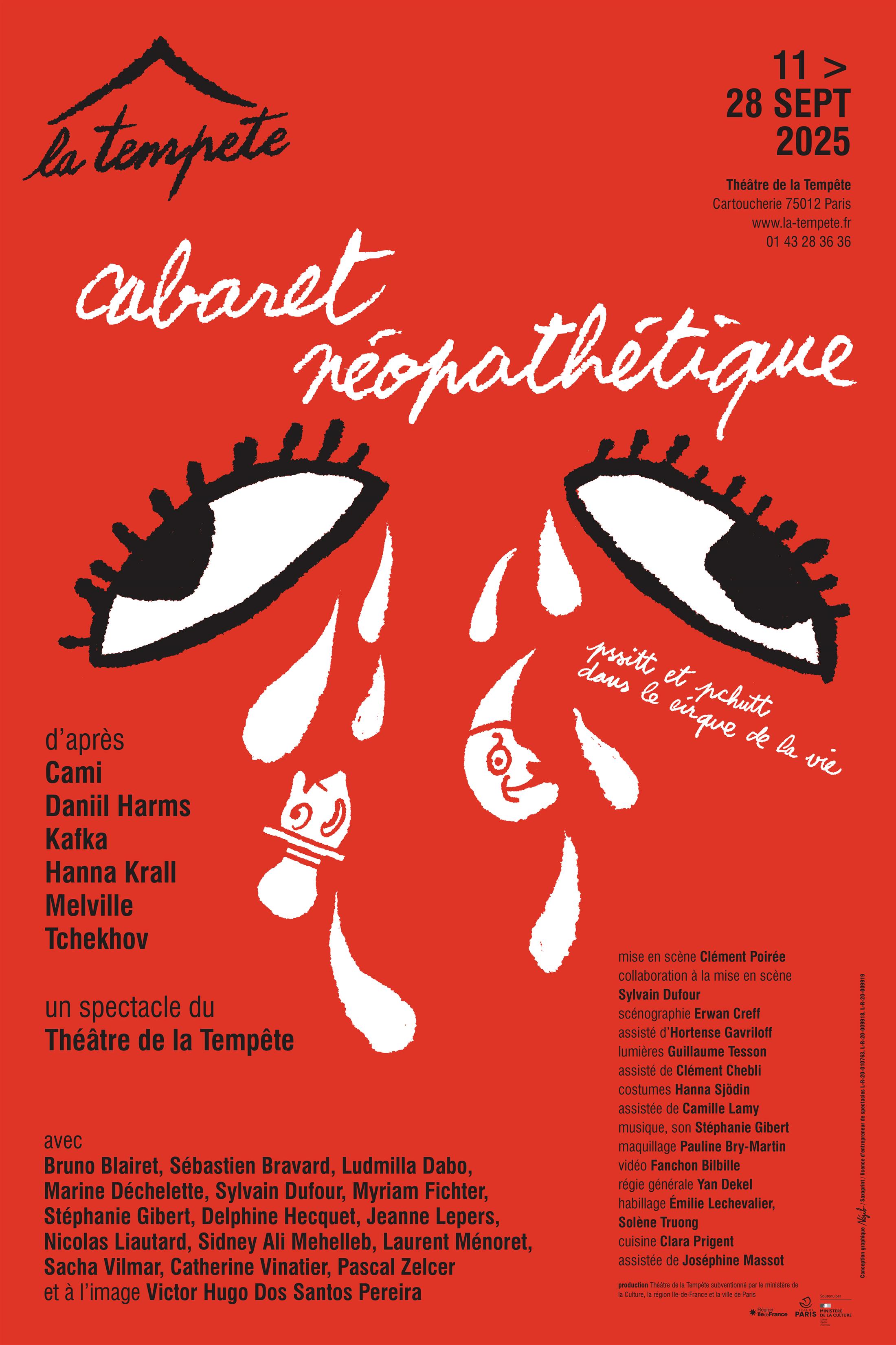 Un cabaret des larmes, néopathétique et drôle. Les rencontres étranges se succèdent portées par la troupe éphémère du théâtre – la troupe sera formée d’artistes de chacun des spectacles de la saison – et nous conduisent au pays de Cami, Melville, Daniil Harms, Tchekhov, Pessoa, Kafka, Hanna Krall…
