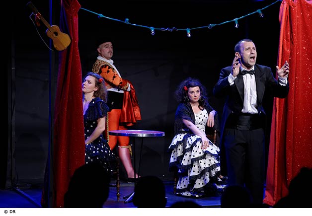 Carmen ... célèbre opéra joyeusement détourné. Une troupe qui ne ménage pas son énergie sur scène et entraine les spectateurs dans une joyeuse parodie. Des gags tout au long du spectacle. Les amateurs d'opéra ne sont pas en reste car les airs sont repris par de talentueux chanteurs et chanteuses. Une soirée "anti-morosité" où on rit !