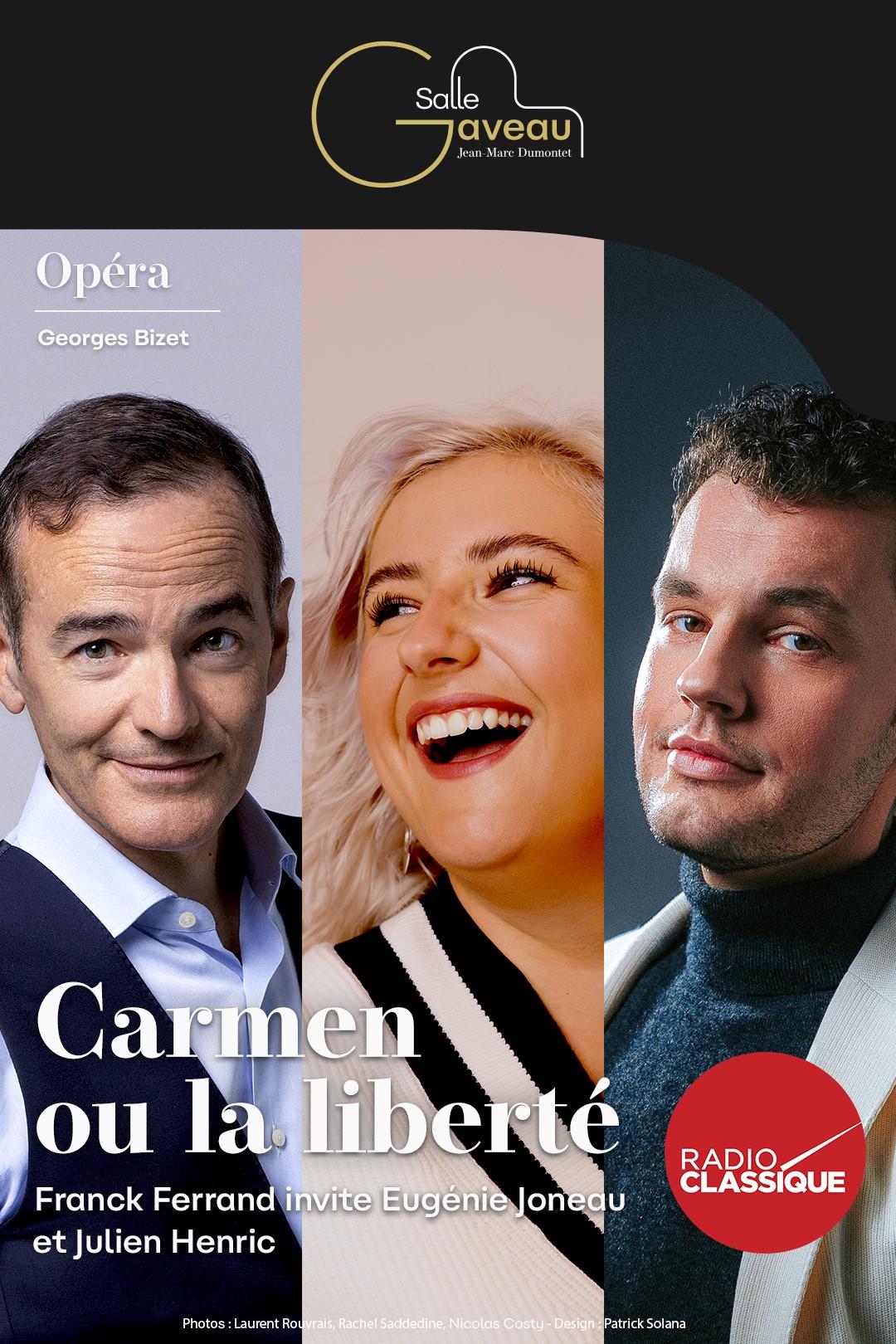Franck Ferrand vous donne rendez-vous avec la mezzo-soprano Eugénie Joneau, le ténor Julien Henric et le pianiste Antoine Palloc, pour une immersion musicale dans l’univers de Bizet, et plus particulièrement autour de son chef-d’œuvre Carmen.