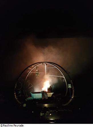 Carrosse, c’est une installation-fiction qui se place et se déplace dans et hors des murs des théâtres, qui fait halte au fond des bois, au milieu des champs ou aux pieds des monuments.