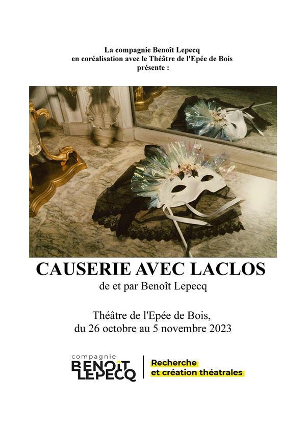C’est donc d’après les chants VII et VIII du Purgatoire de Dante, dans la Divine Comédie, qu’est venue l’idée de Causerie avec Laclos. Le texte se présente comme un poème en prose centré sur un dialogue entre Valmont et Laclos. La dialectique entre le personnage et son auteur permet une réflexion méta-théâtrale nourrie des Liaisons dangereuses.