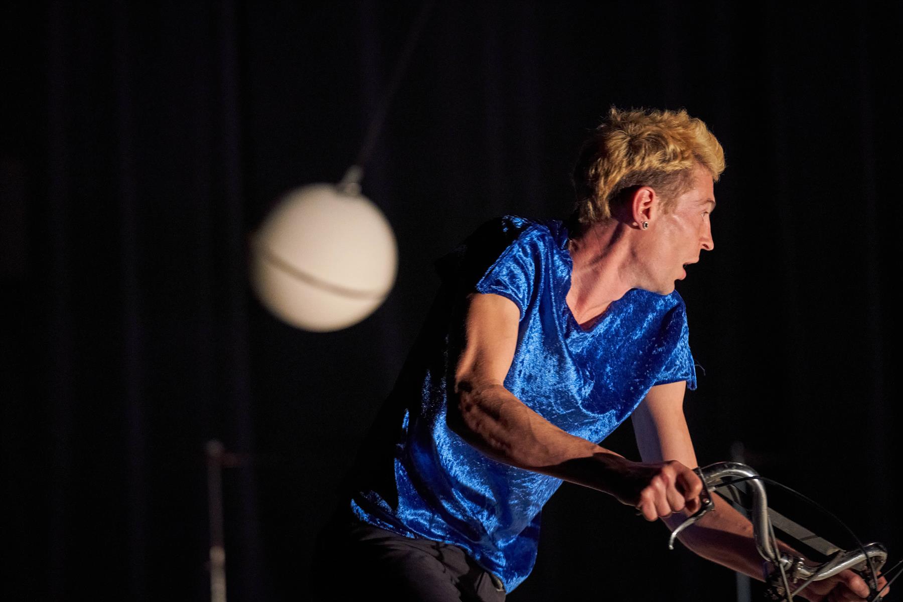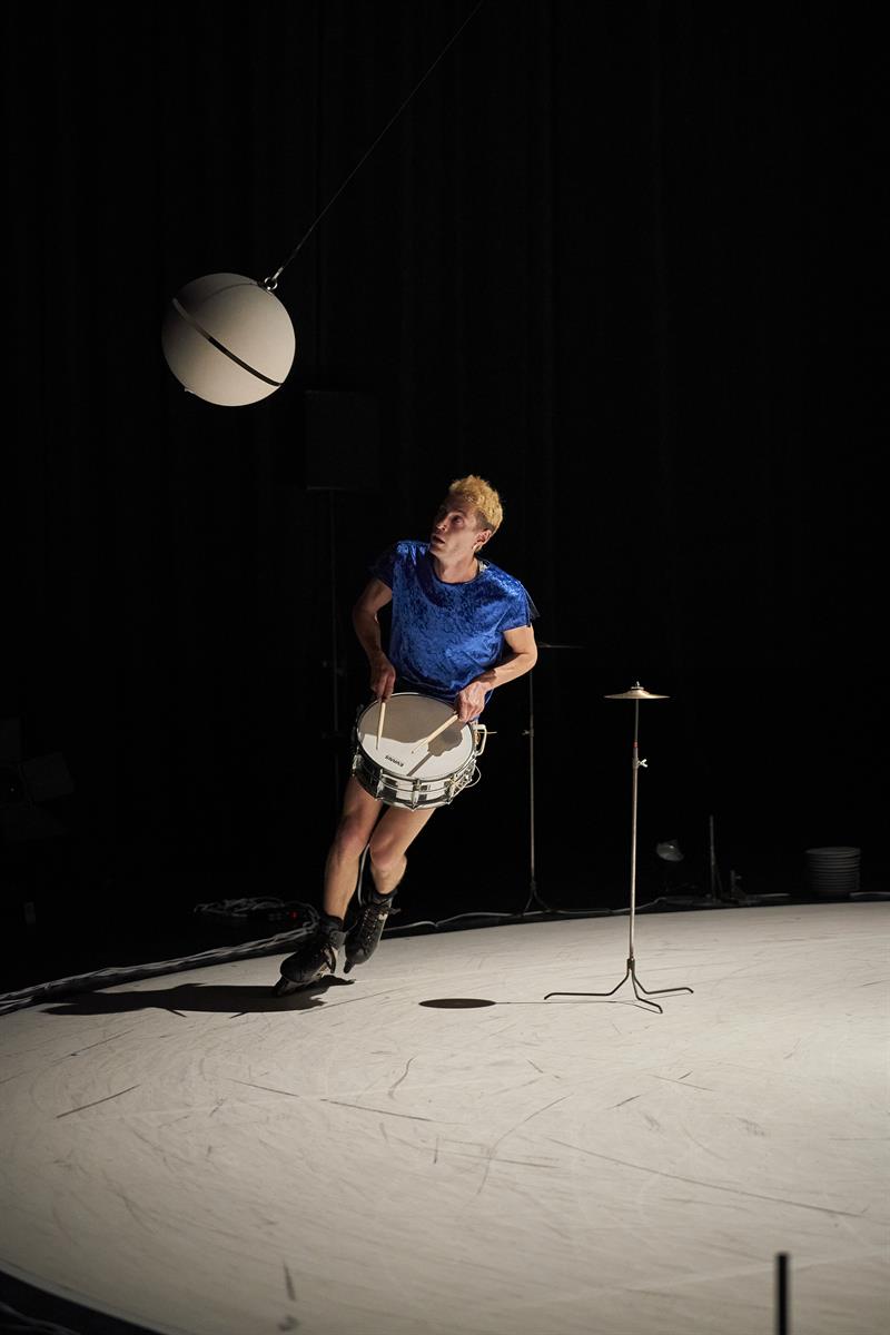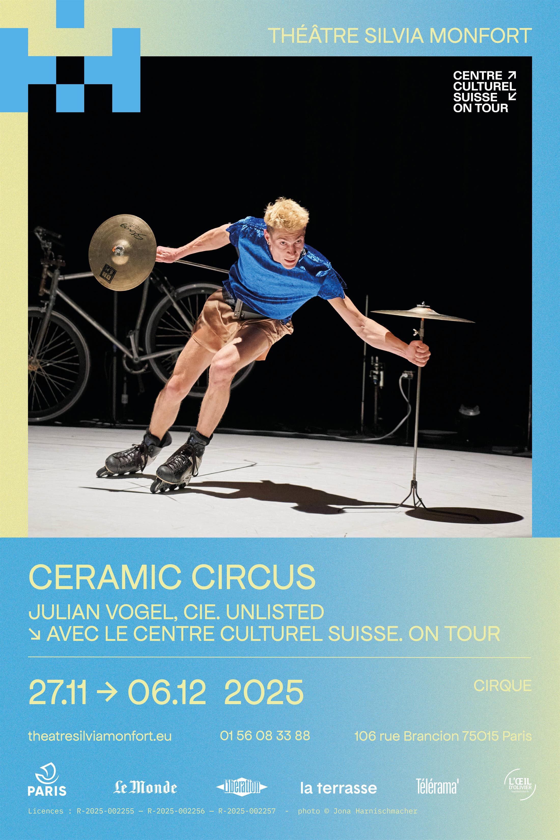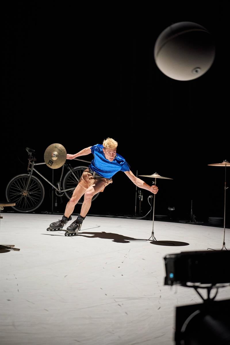 Ici, il se fait homme-orchestre, dans un spectacle qui joue allègrement avec la tension du spectateur pour évoquer les équilibres fragiles qui déterminent nos vies. Numéros d’assiettes chinoises, mouvements de balancier, boule de céramique en oscillation, quête effrénée en rollers… L’artiste ne ménage pas ses efforts pour faire monter la pression. Assumant tous les rôles, y compris la machinerie, la création musicale et la mise en lumière, Julian Vogel multiplie les pièges, casse au passage quelques assiettes et détourne les codes du cirque traditionnel. Frissons garantis.