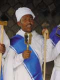 L'Église éthiopienne est la seule église chrétienne au sein de laquelle la danse liturgique tient sa place, forme de prière et lointain rappel de David dansant devant l'Arche d'Alliance. Et si le sistre (tsènatsel) est encore utilisé ici et là, au sein de quelles autres chrétientés trouve-t-on aujourd'hui le tambour (kèbèro et nègarit) durant les services religieux, ou le mèqwamiya, à la fois bâton à danser et béquille sur laquelle se reposer durant les interminables services religieux ?