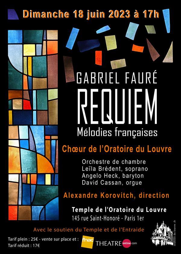 Le Chœur de l'Oratoire du Louvre, dirigé par Alexandre Korovitch, interprétera le Requiem de Fauré ainsi que d'autres oeuvres de musique française. Il sera accompagné par Leïla Brédent, soprano, Angelo Heck, baryton, et David Cassan à l'orgue.