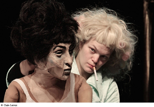 Chambre noire est un duo d’une marionnettiste, Yngvild Aspeli, et d’une percussionniste, Ane Marthe Sørlien Holen, avec des marionnettes à taille humaine, des chansons dévastées, des projections vidéo, une bonne dose d’humour noir et un désert de solitude.