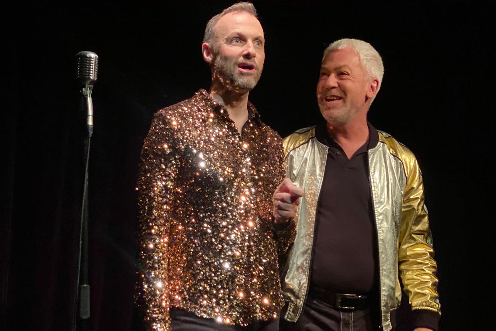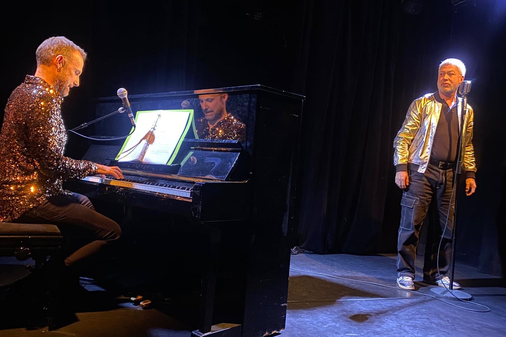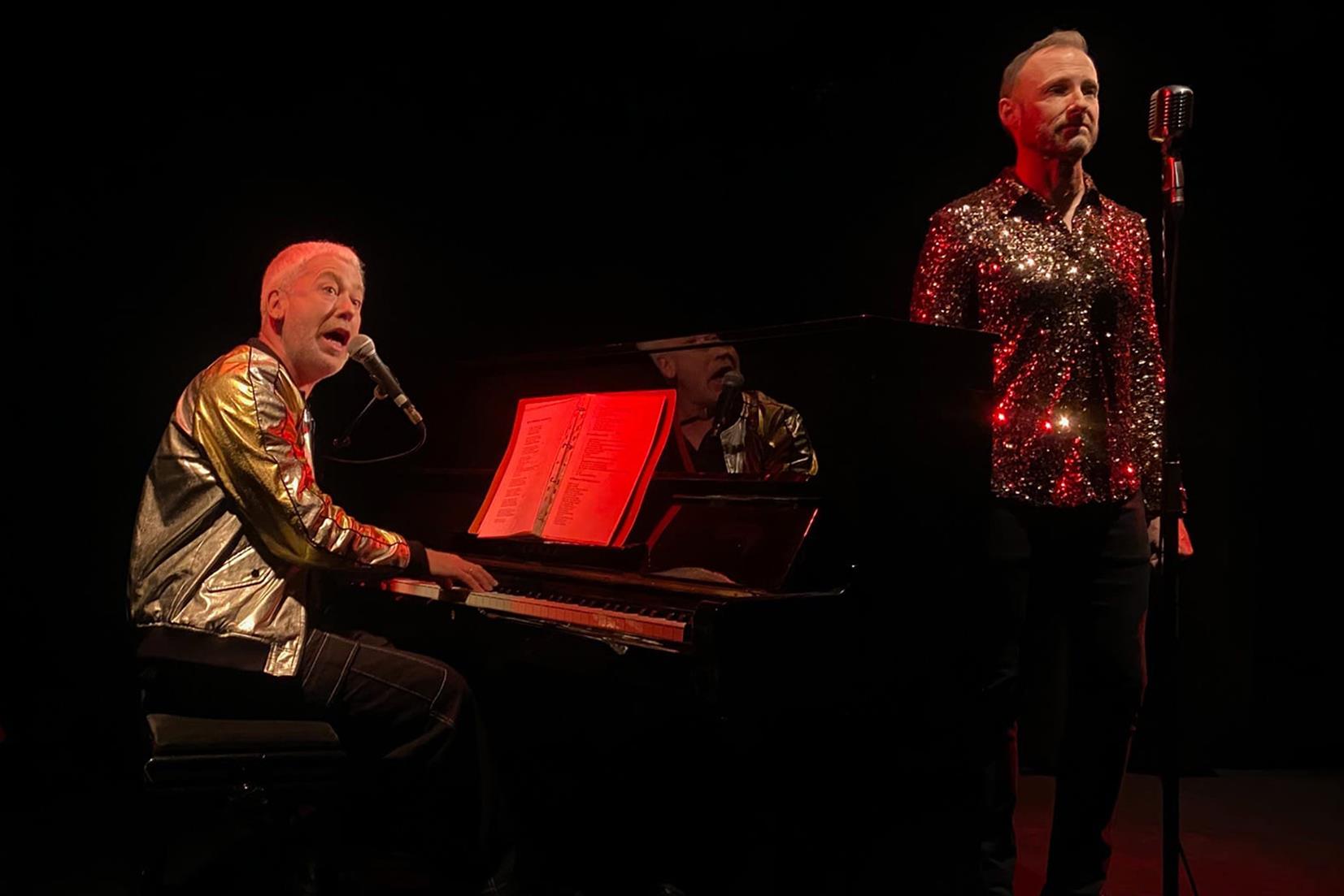 « Ils sont 2 sur scène, en tenue de gala à paillettes : l’un se cache derrière un piano, l’autre derrière un micro. Le temps de leur récital, ils nous entraînent dans une galerie de chansons impossibles, voire improbables. Ne manquez pas ce tour de chant très original animé par deux clowns talentueux. » RegArts