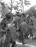Inversement, la guerre donne à la danse un modèle de puissance si bien que les danses en rond ou pilou-pilou, qui consistaient à l’époque précoloniale en un échange de démonstrations de danses entre tribus, ont été interdits par les missionnaires effrayés par leur aspect de violence et leur tendance à dégénérer en conflit armé. Guerre et danse partagent le même idéal de discipline, et l’on peut penser que l’importance accordée à la synchronisation des mouvements des danseurs est liée à l’importance de la précision des gestes des guerriers.