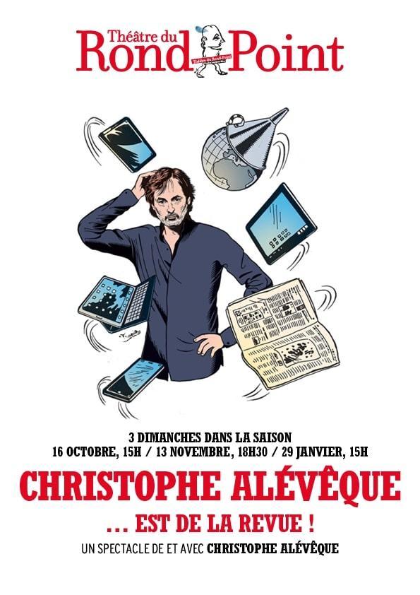 « Alors que la jeune génération d’humoristes parle peu ou pas de politique, Christophe Alévêque en a fait depuis plus de vingt ans son terrain de prédilection. Cette année encore, au Théâtre du Rond-Point, à Paris, et en tournée, il revient avec ses feuilles de notes et son pupitre pour délivrer une redoutable revue de presse, exercice dans lequel cet héritier de Guy Bedos excelle. [...] Exutoire face à la folie du monde, thérapie collective pour citoyens déboussolés, le spectacle de Christophe Alévêque, insolent et revigorant, tient sa promesse : on en ressort plus léger que quand on est entré, avec une furieuse envie de se déconnecter de l’info en continu. » Sandrine Blanchard – Le Monde