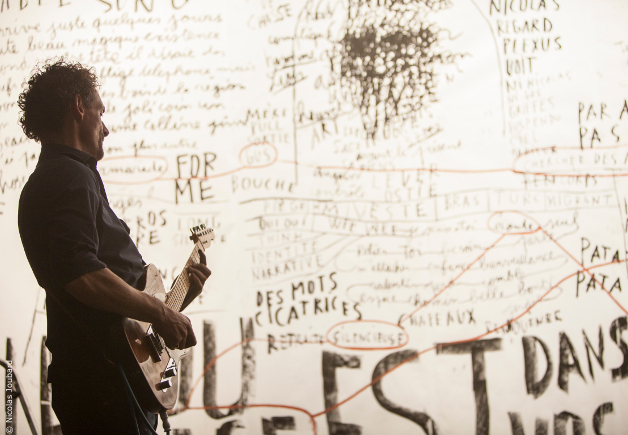 Les jeux graphiques répondent aux riffs de guitare, la verve poétique de Sébastien Barrier donnant le rythme à cette performance où se côtoient humour et désespoir. Après l’enivrant Savoir enfin qui nous buvons, une fresque “où il est question de se perdre, pour parfois se retrouver”.