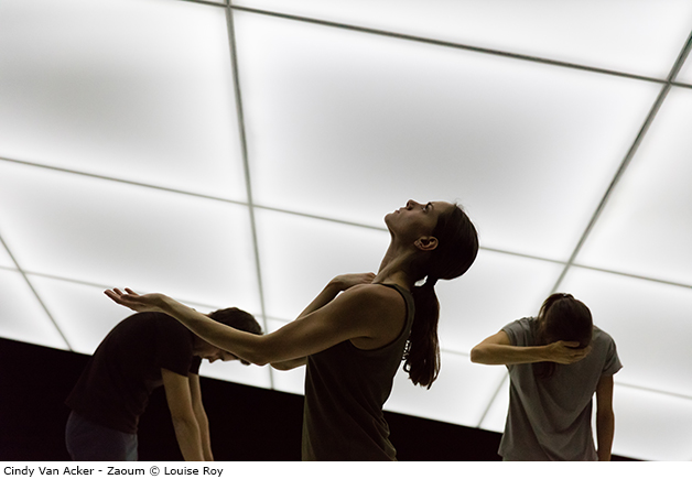 Car malgré sa noirceur, Zaoum est une œuvre étonnamment sereine, qui met en avant, tout autant que la violence, la poésie et la pureté qui peuvent émaner des corps et des voix, et de leur dialogue avec l’espace. Sur le plateau, les contraires coexistent, à l’instar de la scénographie créée par Victor Roy, plafond lumineux menaçant de tomber comme une presse sur les danseurs. Et la présence d’une enfant, tour à tour témoin, organisatrice et voix poétique de la pièce, ajoute à la force et au mystère de cette chorégraphie, et à sa lenteur entêtante, force d’endurance et de résistance.