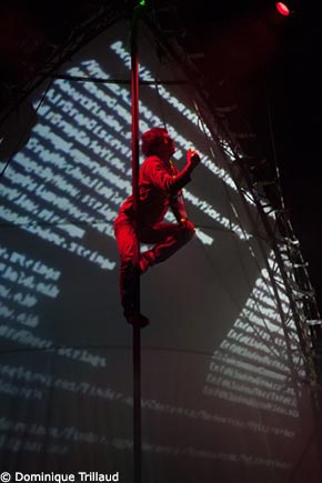 Avec sa troisième création, TeKhNê, spectacle-performance hybride entremêlant Arts du Cirque, Shibari, Art Numérique et Danse, le Cirque Aléatoire questionne nos rapports entre corps et technologies et vous invite à une véritable plongée dans l'univers technophile du mouvement transhumaniste.