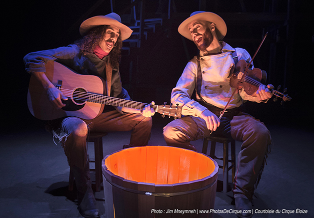 Dans le Saloon du Cirque Éloize, l’énergie contagieuse de la musique folk, aux airs de Johnny Cash et de Patsy Cline, donne le ton à une comédie acrobatique qui impressionnera toute la famille.