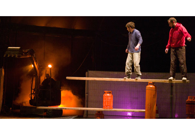 « Une nouvelle folie actuellement au Théâtre Monfort Extension. Ce trio infernal utilise des bouteilles de gaz et des planches, agrémentés ici d'un outil supplémentaire et non des moindres une pelle mécanique. Frissons et fous rires garantis, un spectacle inclassable à ne surtout pas manquer ! » Théâtres, 22 décembre 2015