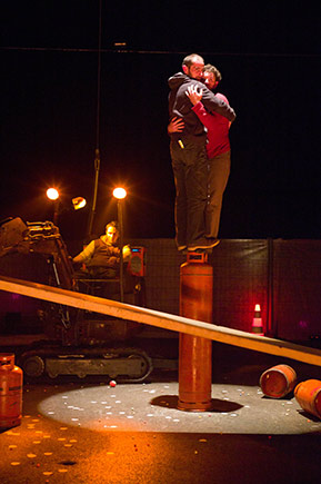 Ils aiment les sensations fortes, prendre de vrais risques et jouer avec le public. S'ils vont loin dans le déséquilibre et s'ils adorent jouer avec nos nerfs, le but est pourtant de parler d’humanité et de nous démontrer que les individus dépendent les uns des autres et que seule la solidarité et l'écoute permettent la survie du groupe. Une belle mécanique de poésie, d’acrobatie et de virtuosité jubilatoire.
