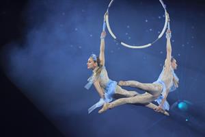 Le cirque national d'Ukraine nous invite à plonger dans le monde des miracles et des rêves de noël avec des personnages fantastiques qui créent une atmosphère de conte de fées à travers les arts du cirque.