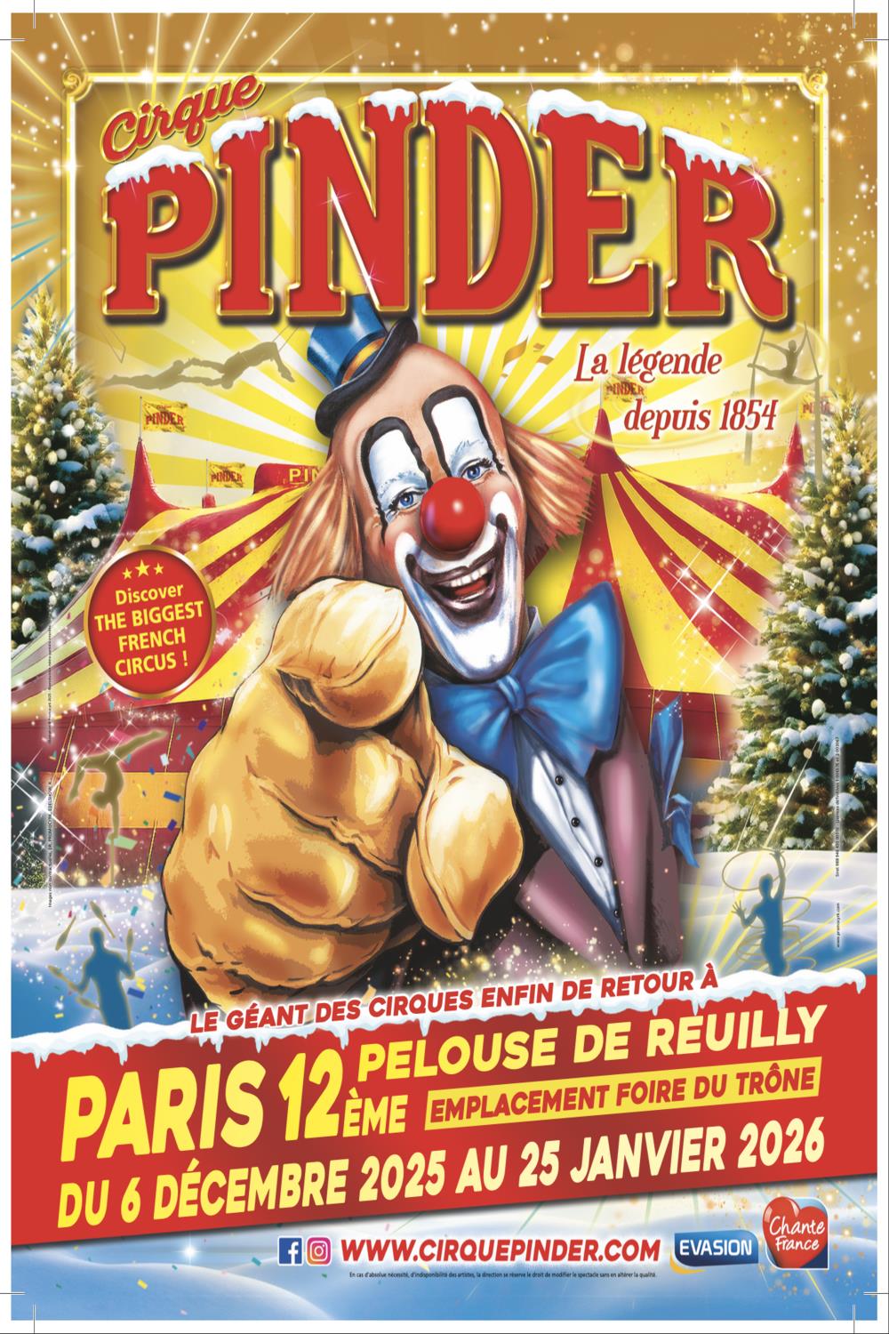 Pinder, le géant des cirques fait son grand retour sur la pelouse de Reuilly après 8 ans d’absence ! Il revient en fanfare avec un nouveau spectacle, sans animaux, et sous un chapiteau flambant neuf chauffé.