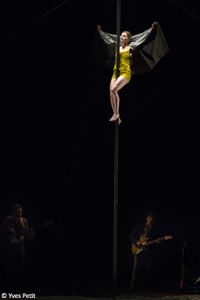 Mais dans l’univers de la compagnie franc-comtoise, l’eau peut jaillir du sol, un acrobate se suspendre sur son mât chinois et du sable couler, inexorablement, comme dans un sablier géant. La troupe, composée de treize artistes, dont huit jeunes circassiens ultra-doués, veut dire ici toute la liberté du cirque et son aspect populaire qui sait réunir, en défiant les clivages. L’orchestre, comme toujours présent sur scène, renouvelle le répertoire musical de la compagnie. Un spectacle époustouflant qui rend à chaque instant son éternité.