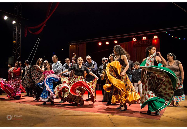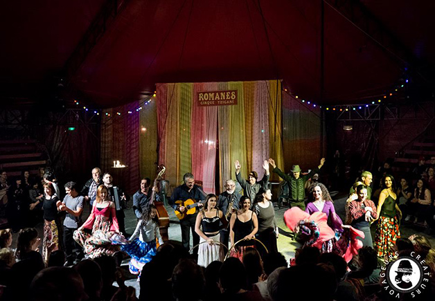 Un tourbillon d’émotions, de grâce et de couleurs : contorsion, trapèze, ruban, cerceaux, funambule, des danses flamenca et tziganes accompagnées par un orchestre Tzigane des Balkans, violon, guitare, contrebasse, accordéon et le chant de Rosa qui montre le chemin du dernier peuple Nomade !