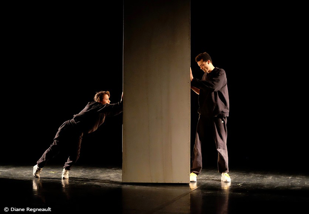 Que fait-on lorsqu’on se retrouve dos au mur ? Les danseurs et chorégraphes Camille Régneault et Julien Saint Maximin, experts en breakdance, ont pris cette expression au pied de la lettre. Chacun de son côté de la paroi, ils s’y adossent, glissent dessus et jouent avec, pour mieux rêver de sauter par-dessus à la rencontre de l’autre. Entre le besoin de se protéger et le désir de découvrir, la solitude et la rencontre, l’enfermement et l’ouverture, Dos au mur franchit tous les obstacles.