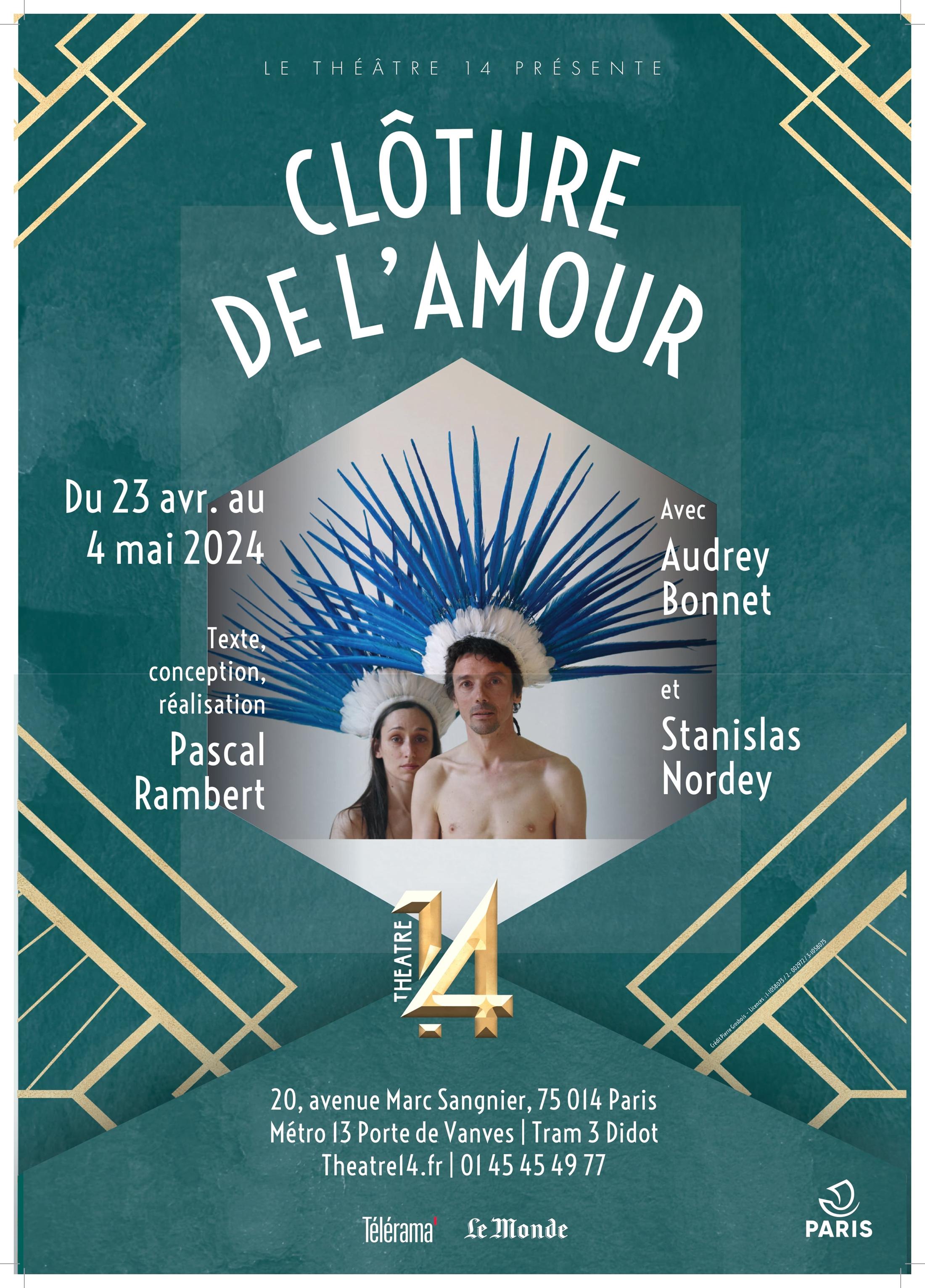 Joué plus de deux cents fois depuis sa création en 2011, Clôture de l’amour est un spectacle d’une intensité rare, où les mots transpercent les cœurs et cognent les tripes, disséquant sans ménagement le sentiment amoureux.