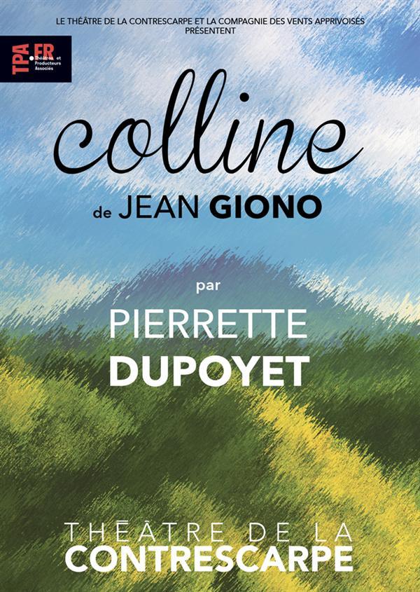 Dans Colline, Jean Giono évoque avec autant de fougue que de tendresse l’âpreté qui s’empare des âmes quand soudain l’eau des sources vient à manquer et que la peur s’installe au creux des ventres. Pierrette Dupoyet a interprété ce spectacle à travers le monde.