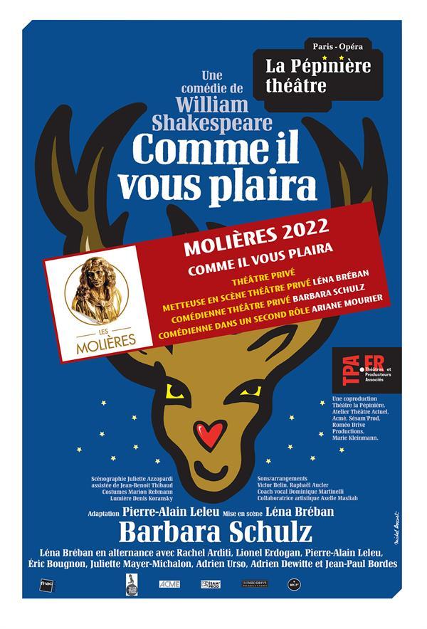 Molières 2022 du Théâtre privé, de la Comédienne dans un spectacle de Théâtre privé (Barbara Schulz), du Metteur en scène dans un spectacle de Théâtre privé (Léna Bréban), de la Comédienne dans un second rôle (Ariane Mourier).