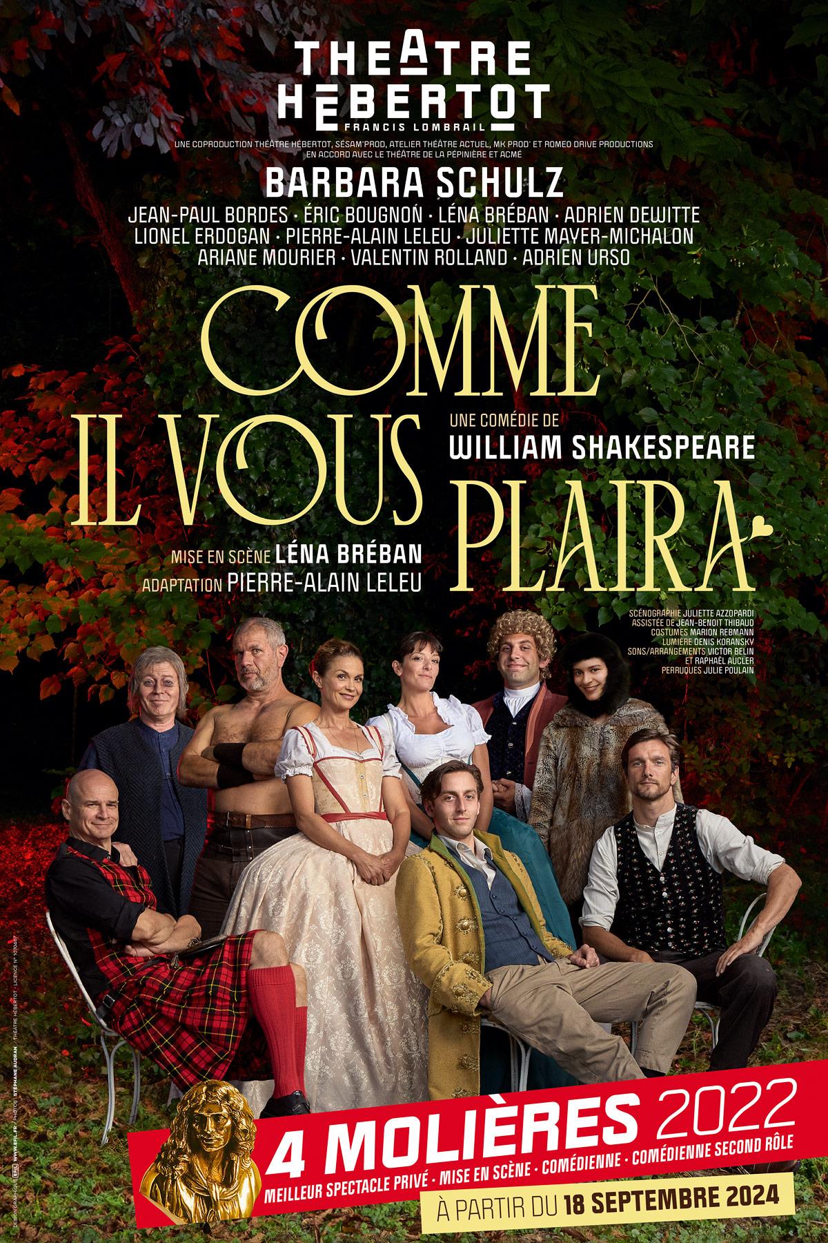 Un jeune Duc, après avoir banni son grand frère, le vieux Duc, décide de bannir sa nièce Rosalinde. Une traduction moderne et enlevée où se mêlent aventure, amour, désir, amitié, jalousie…
