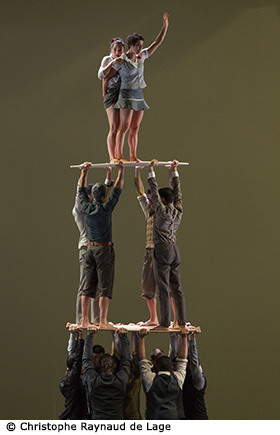 Aujourd’hui formée de 22 circassiens, la troupe poursuit son processus de création basé à la fois sur le concret à savoir le travail physique en groupe, et sur l’abstrait lié au sens de l’œuvre.