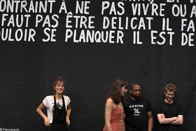 Toute une galerie de personnages se racontent et racontent le monde dans une langue puissante, irrévérencieuse, d'une vitalité qui rejoint celle des interprètes attachés à la rendre percutante. S'arracher à la violence du conformisme, être dans l'action et pas seulement dans la réflexion, proposer une vision d'un « corps collectif » : autant de propositions qui traversent sans concession cette œuvre majeure, sombre et drôle, véritable regard incisif sur les dangers qui nous menacent tout autant que sur les forces vives qui nous protègent.