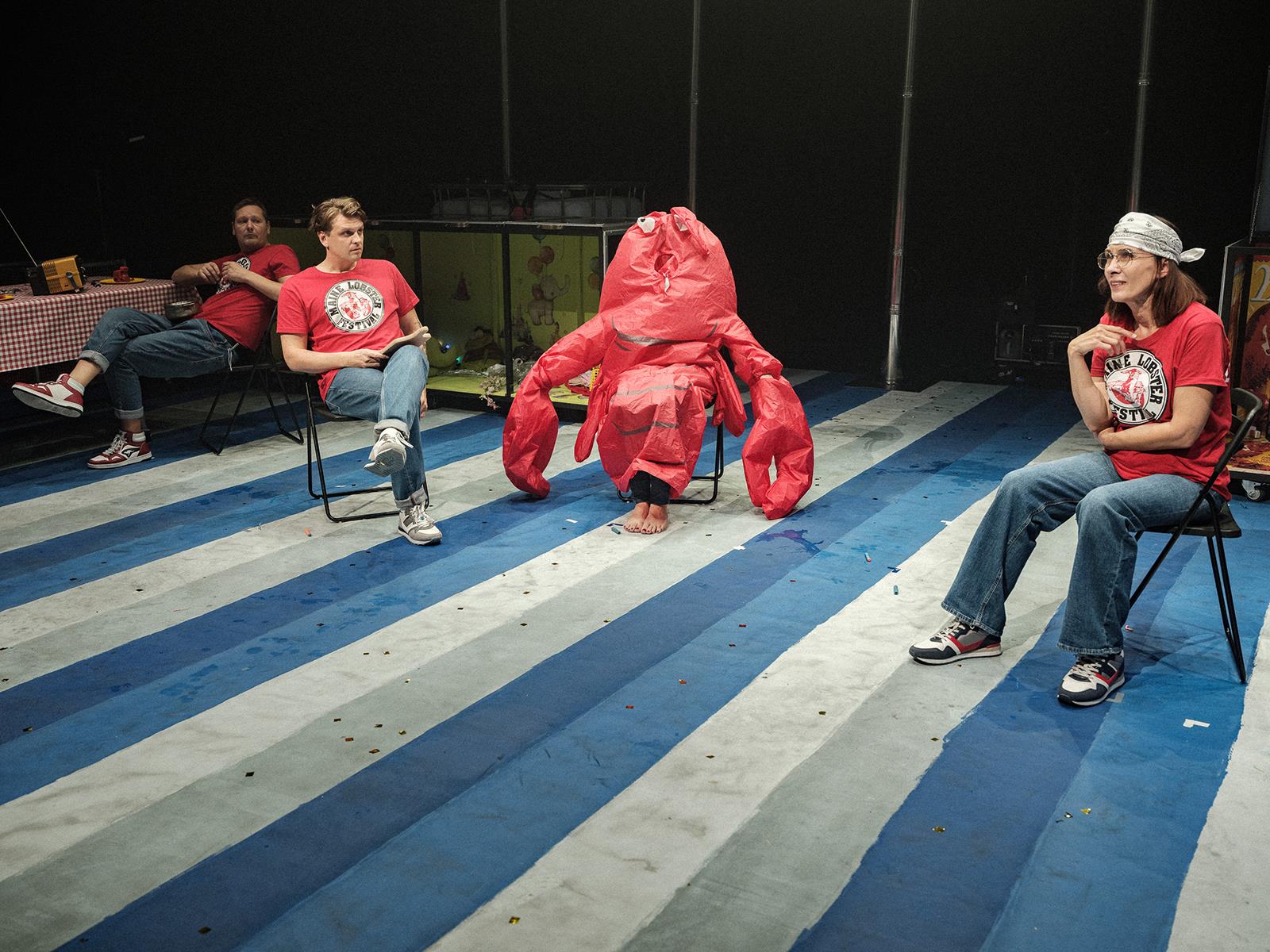 Sous sa plume, la fête du homard devient le reflet des défauts de notre société. Pour la metteuse en scène Yana Ross, aux origines lituanienne, juive et new-yorkaise, elle est le miroir cruel de nos ambiguïtés.