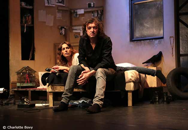 Cavale et Slim se bagarrent dans une langue pure et poétique dont les mots proviennent d’un passé plein d’idéaux où tout semblait possible, où l’art et le rock en particulier étaient encore un geste de rébellion et où l’on pouvait réinventer sa vie. Cowboy Mouth est en effet le fragment d’une Amérique sans ancrage, ne croyant plus ni en Dieu, ni en la justice mais elle est aussi le reflet d’une histoire plus intime : celle de ses auteurs, Sam Shepard et Patti Smith. A l’époque pour Smith, Shepard a quitté femme et enfant. C’est dans la chambre du célèbre « Chelsea Hotel » à Manhattan où ils ont ensemble élu domicile, que la pièce va voir le jour. En deux nuits blanches, ils vont écrire leur histoire sur les touches d’une vieille machine à écrire. Cette chambre du « Chelsea Hotel » est le décor unique de cette pièce… Pour une raison évidente, elle est l’écrin de leur histoire.