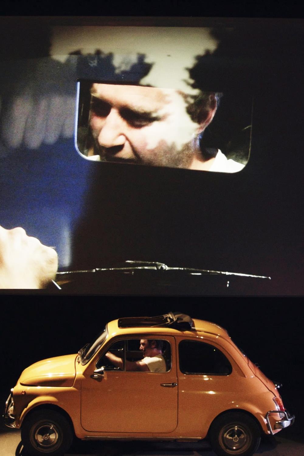 Sur la scène du théâtre, onze caméras tournent en direct le spectacle qui se joue devant vous : souriez, vous êtes filmés. Crash ! ou le voyage de Blaise à bord d'une véritable Fiat 500 Positano des 70's.