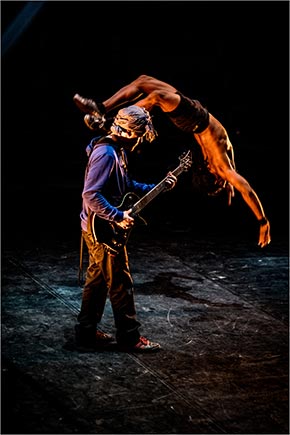 Mât chinois, pneus de camions, de voitures, de motos, de vélos… Un spectacle de cirque au son rock-grunge-electro, qui appelle à l'urgence de vivre. Acrobates et musiciens courent à bout de souffle, grimpent et jouent avec le vide. Ils cherchent la pulsion de vie dans le labeur, la prouesse, la fragilité, le chant.