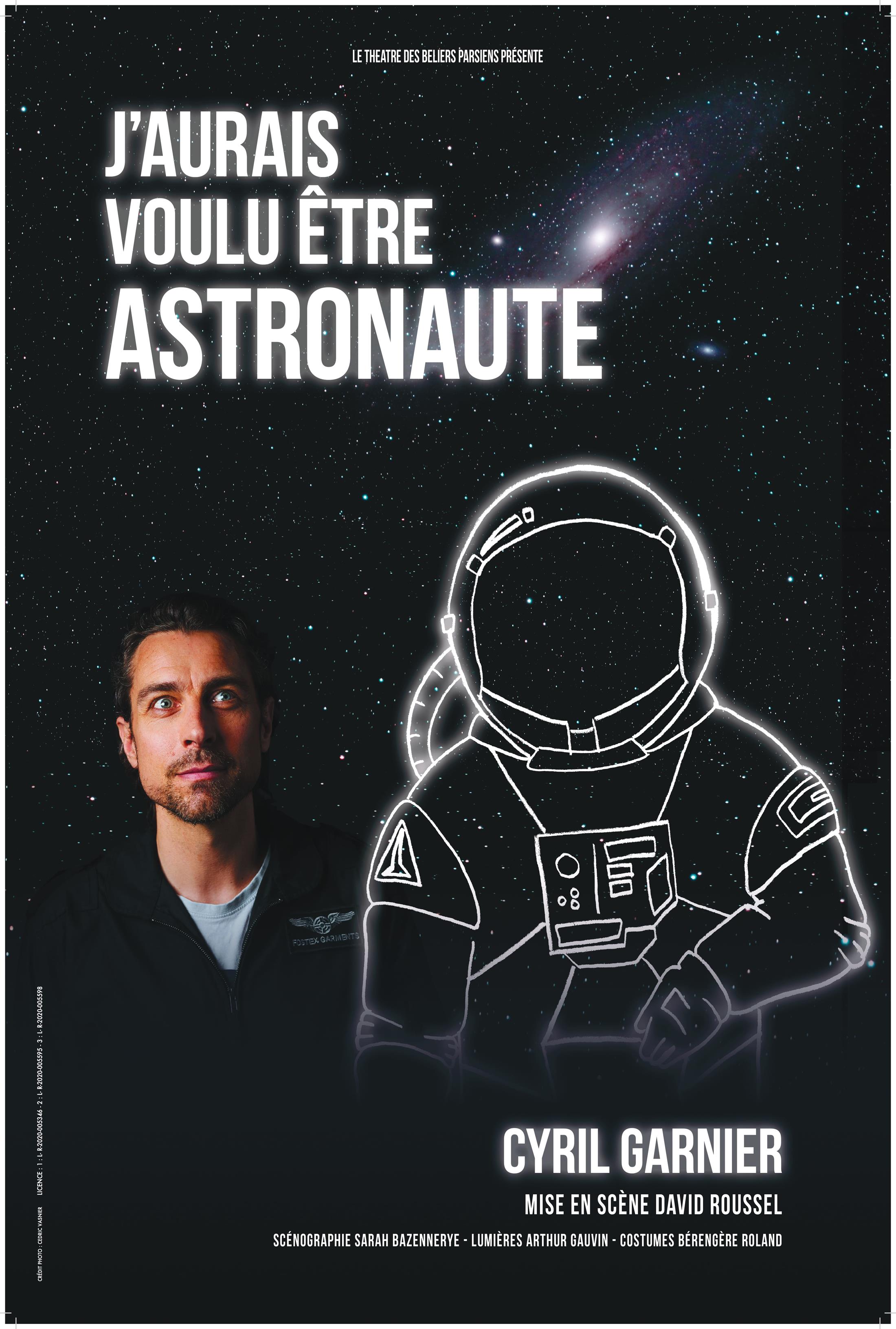Dans un spectacle drôle, intelligent et émouvant, Cyril Garnier croise l’histoire mouvementée d’un acteur passionné et l’incroyable aventure des héros de la conquête spatiale. Sa sortie dans l’espace nous apprend à surmonter les ascensions fulgurantes, les violentes turbulences et les baisses d’altitude soudaines que la vie nous réserve, pour qu’à la fin nous aussi on dise... j’aurai voulu être astronaute.