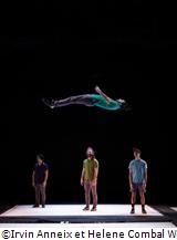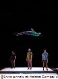 Comment faire de la scène le plus beau terrain d’envol ? En y installant des trampolines, bien sûr ! Pas moins de trois constituent le socle de cette étrange scénographie qui n’a pas fini, tout au long du spectacle, de révéler ses secrets… Et les six acrobates s’en donnent à cœur joie : au rythme d’une musique enivrante, ils deviennent les fous volants les plus bondissants, brisant net les frontières entre ciel et terre.
