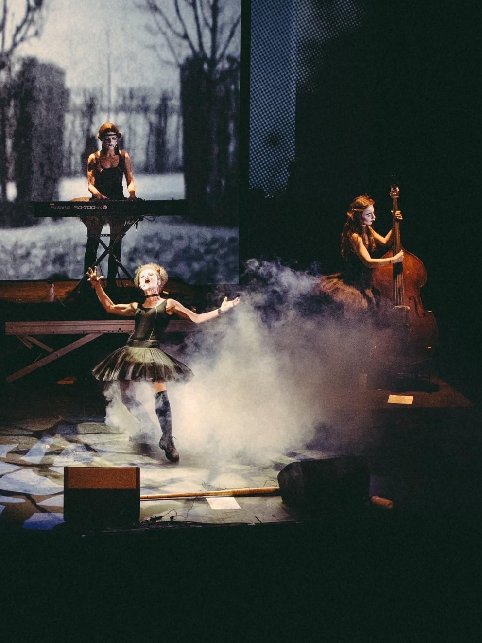 Ukraine Fire reprend les codes chers aux Dakh Daughters, des textes puissants et poétiques, un goût prononcé pour la théâtralité, une orchestration live détonante accompagnée de projections vidéo flirtant avec le fantastique. Un concert qui sonne comme un cocktail artisanal lancé contre le mur de la résignation. Tel un acte de résistance, le concert prend la forme d’un grand poème musical qui témoigne de la situation actuelle en Ukraine. Au chant, violoncelle, accordéon, guitare, contrebasse ou percussions, les chanteuses-comédiennes se permettent tout : l’hommage à la tradition slave se mêle à des compositions théâtrales rock, minimalistes ou explosives.