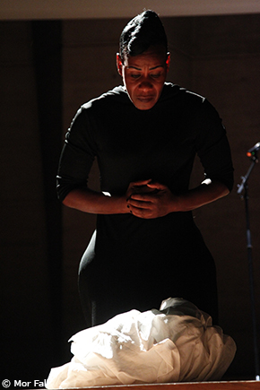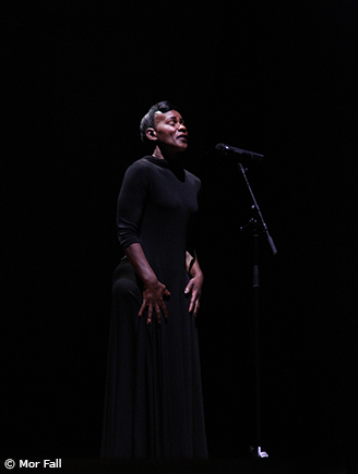 En retraçant son parcours mouvementé, la comédienne donne à voir comment se construit l’identité de Tituba. Le texte a la forme d’une narration poétique restituée à travers un dialogue avec la musique interprétée au piano par Lise Diou-Hirtz. Proche de la transe, inspiré du film Mammy Water de Jean Rouch, le jeu de Danielle Gabou - à la fois homme, maître, esclave, femme ou petite fille – met en scène un corps qui danse pour évoquer ce qui est au-delà des mots, la quête éperdue de soi-même quand le corps se libère en brisant ses chaînes.