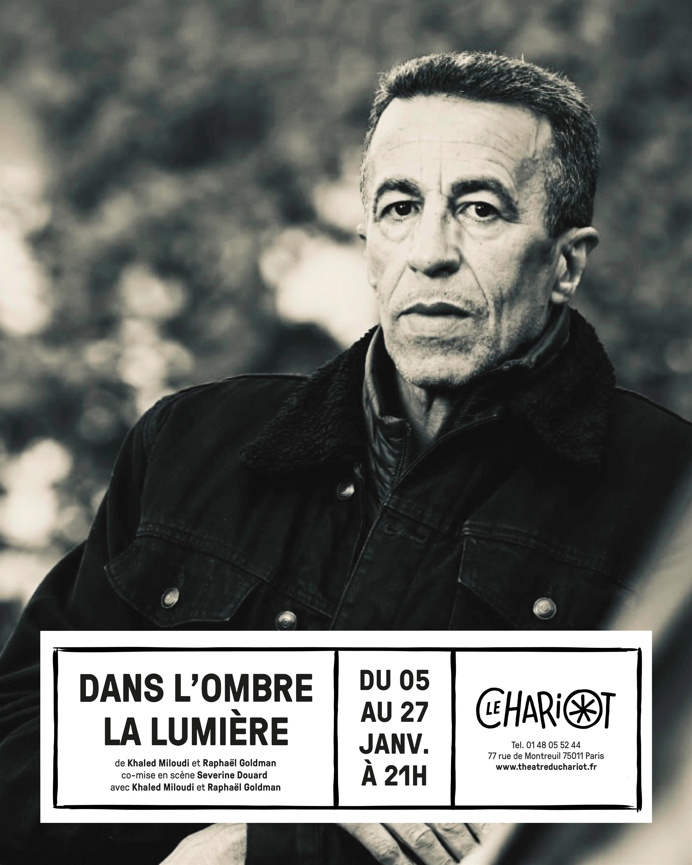Quatre ans plus tard, lors d’une permission, Khaled croise Raphaël qui lui propose de l’héberger pour le week-end. C’est la naissance d’une amitié fraternelle, chaque permission se passera désormais chez Raphaël. Un soir, alors que Khaled déclame un poème, Raphaël se met au piano. Voilà comment le spectacle est né. À travers sa poésie douloureuse et passionnée, au gré des notes faisant écho à ses mots, Khaled Miloudi nous raconte son histoire : Dans l’ombre, la lumière.