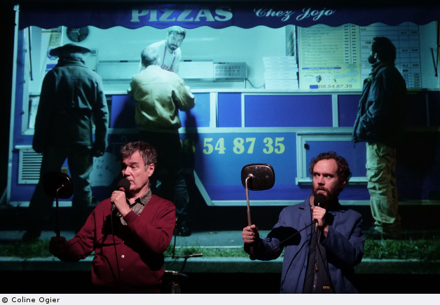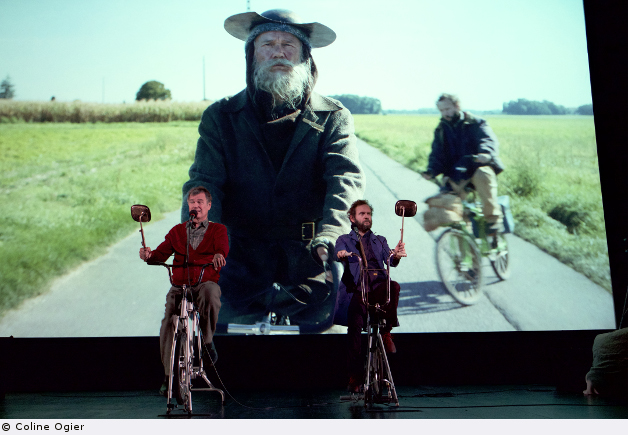 En racontant la même histoire, le théâtre et le cinéma se complètent, s’opposent, se parlent, s’accordent et se désaccordent en osmose avec la musique et les bruitages en direct. Et la mise en scène de ce dialogue, de cet échange se fait toujours au service du récit, d’un personnage, d’un point de vue…