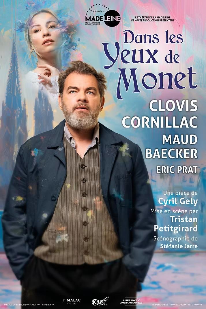 Depuis son interprétation sublime dans "La contrebasse" de Süskind, je n'avais pas revu Clovis Cornillac au théâtre... Et là, il est splendide et très convaincant dans le rôle de Monet et l'on voit " Dans les yeux de Monet" son désespoir de ne plus pouvoir peindre la lumière et aussi une rédemption ouvrant sur les toiles de la cathédrale de Rouen... La pièce est inventive, décors et lumières superbes, et les trois acteurs au top. Bravo à Clovis Cornillac pour cette belle interprétation que je ne suis pas prête d'oublier. Bonne continuation. Une tournée en province peut-être...