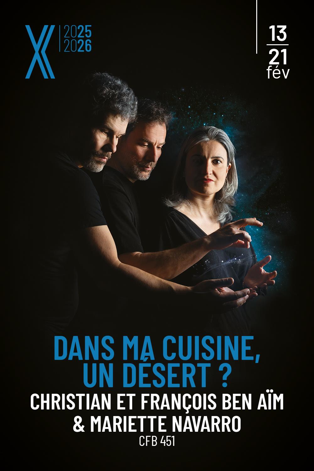 Dans ma cuisine, un désert ? s’inscrit dans la lignée des deux pièces jeune public des frères Ben Aïm accueillies au théâtre il y a plusieurs années : La Forêt ébouriffée et Mirages – Les âmes boréales. Une nouvelle fable écologique entre danse, théâtre et cirque pour questionner de façon ludique et poétique le cycle de l’eau et les rapports complexes que nous entretenons avec l’or bleu.