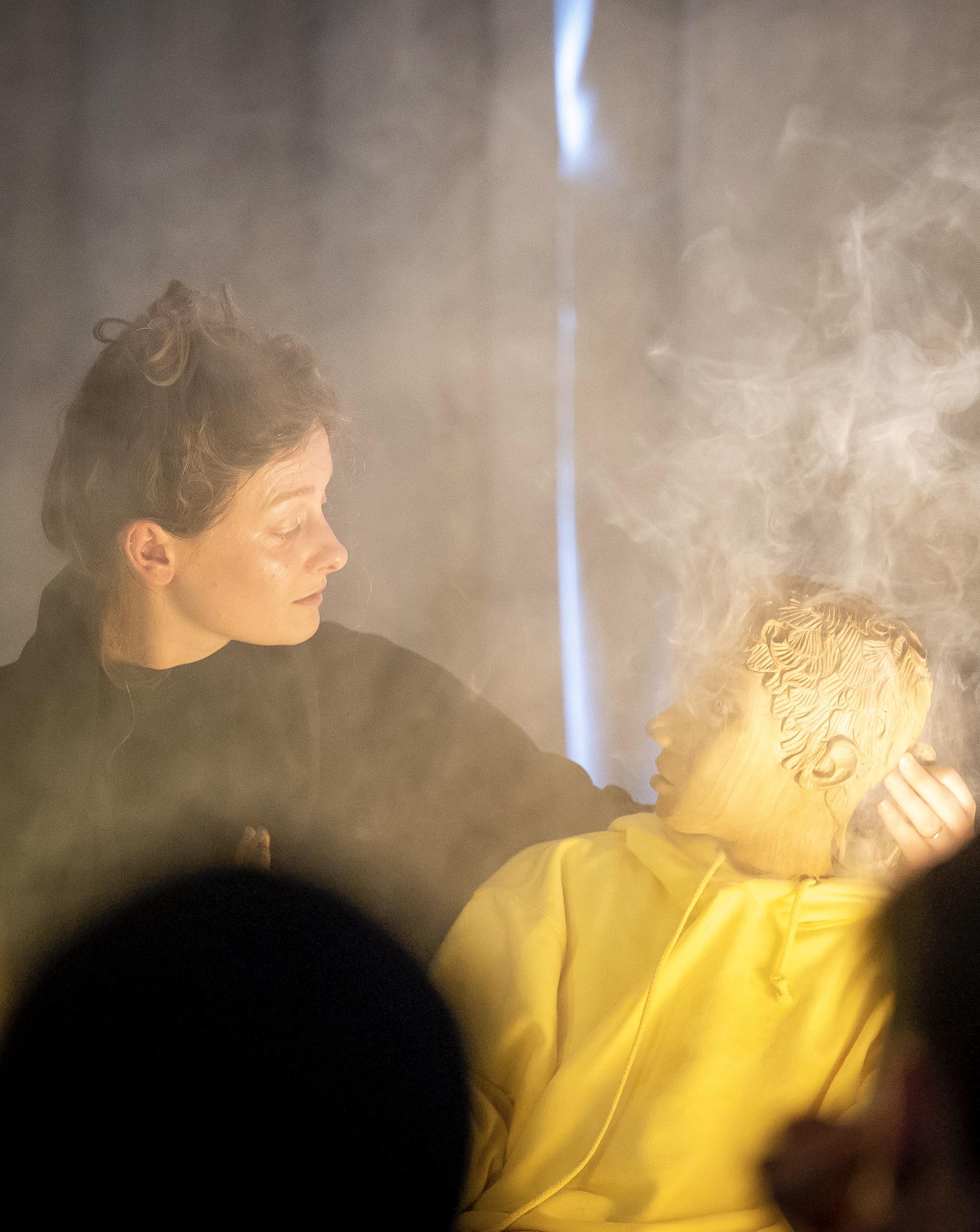 Le jour d’une éclipse solaire, alors que tout le monde se réunit, Didi choisit le repli. Incarnée par une marionnette en bois, elle a le sentiment que plus rien ne l’anime. Alors, elle préfère s’arrêter. Elle s’enferme dans un monde intérieur représenté, sur scène, en dessin d’animation. L’émission de radio libre qu’elle écoute constitue son dernier lien avec le monde extérieur. Comment ce voyage introspectif, cette apnée nécessaire mais transitoire, lui permettra-t-elle de refaire surface ?