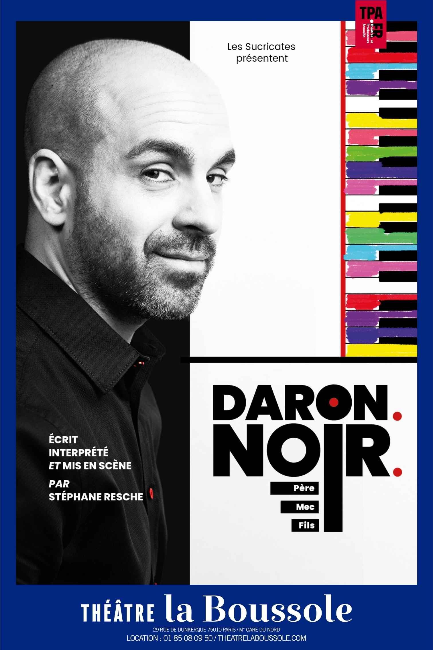 Daron. Noir. (père, mec, fils), un one-dad-show iconoclaste et truculent qui allie humour noir, mélodies intemporelles et blagues de papa.