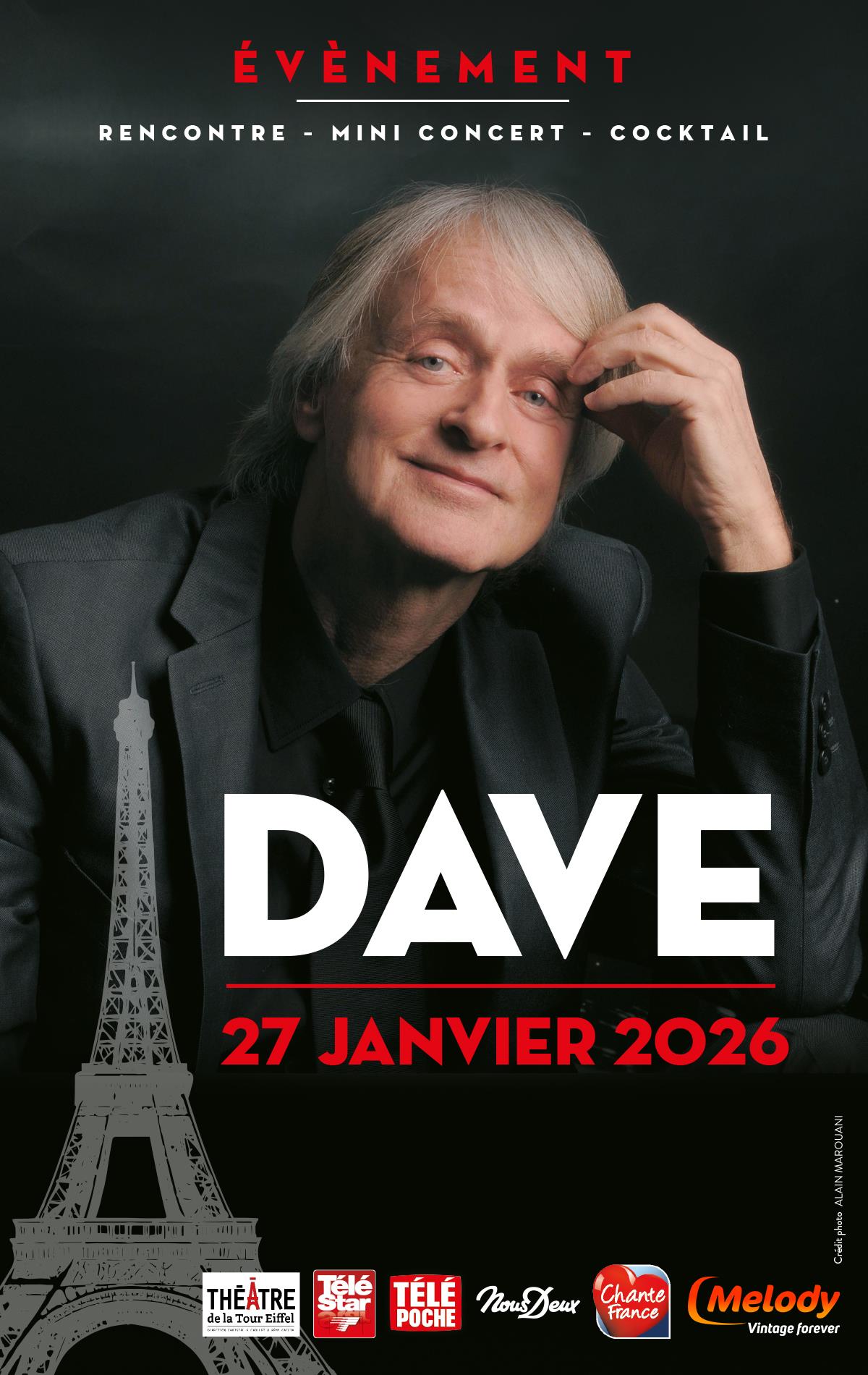 Icône incontournable de la chanson française, Dave vous donne rendez-vous pour une soirée exceptionnelle au Théâtre de la tour Eiffel.