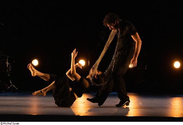 Le duo hypnotique et précis se dessine entre la puissance du flamenco de David Coria et le feu intérieur de Jann Gallois. Dans une atmosphère joyeuse et tourbillonnante, les corps s’entrechoquent, luttent pour finir par se rejoindre et s’accorder.