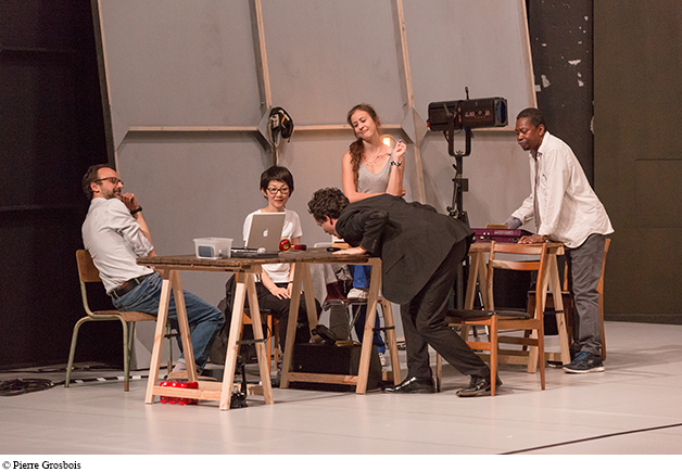 Le spectacle que nous construirons sera donc celui d’un groupe de cinq acteurs travaillant en direct à la fabrication d’un spectacle sur la démocratie à partir des textes de Tocqueville, ceux-ci produisant en retour des effets sur le déroulement du travail théâtral lui-même.